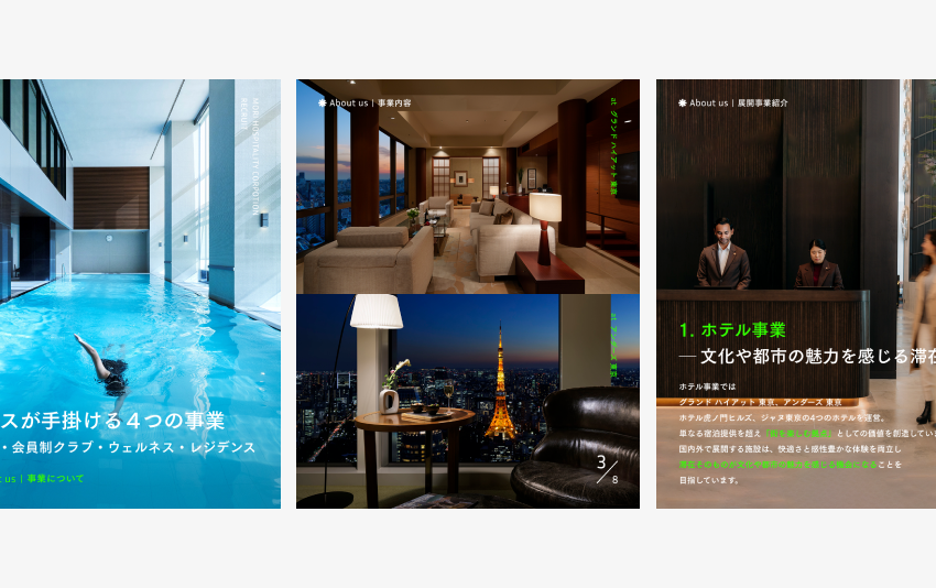 これらを踏まえ、今回は4つの事業領域を明確に打ち出すことで、ホテル事業にとどまらない多角的な魅力を訴求。あわせて、港区に集中した立地による利便性や、エリア特性を活かした強み・特長を効果的に伝えることを目的としました。